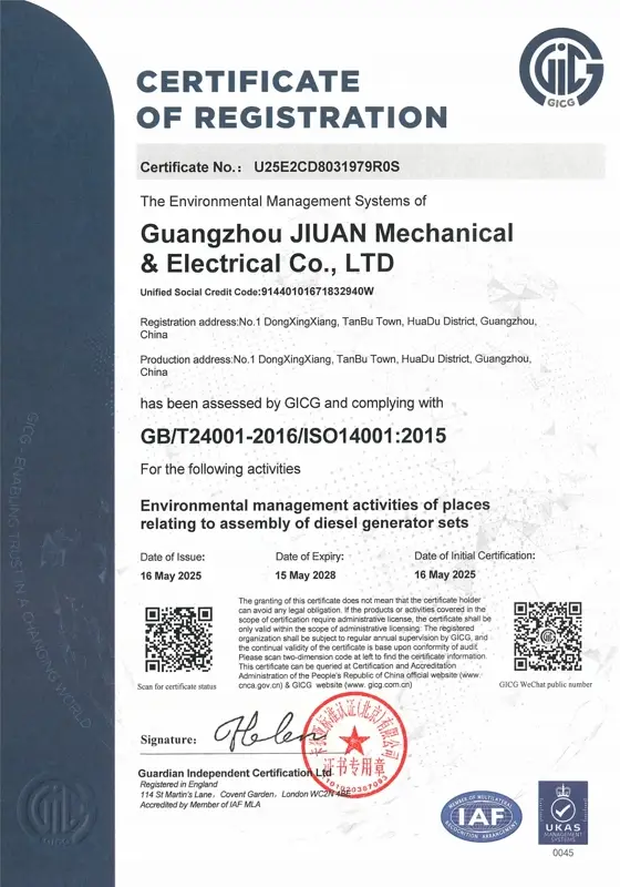 Jiuan holds official authorizations from all major engine manufacturers. This is both recognition of our capability and credibility and a commitment to our customers. Every generator set is built with genuine, traceable components and undergoes rigorous quality control and testing to ensure stable, reliable performance that meets international standards.